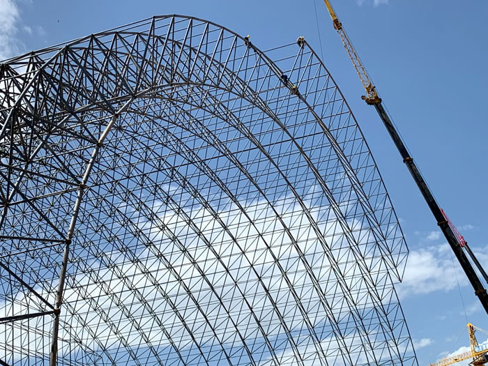 (2)网架加工前应对现场尺寸进行复测,确认无误后方可进行加工、安装;网架制作、运输、安装应遵守《空间网格结构技术规程》JGJ7-2010、《钢网架毕节螺栓球节点》JG/T 10-2009、《钢网架毕节螺栓球节点用高强度螺栓》 GB/T 16939-2016、《毕节钢结构毕节工程毕节施工规范》 GB50755-2012、《毕节钢结构毕节工程施工质量验收标准》 GB50205-2020。